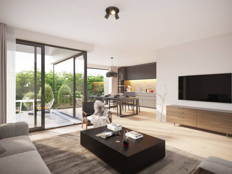 De koper richt het appartement zelf in naar eigen smaak en budget. Hierbij krijgt hij of zij de vakkundige ondersteuning van de klantenbegeleiding en de toonzalen. Samen bekijken we wat de wensen en mogelijkheden zijn voor het realiseren van uw droomwoning.